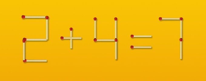 È stato necessario riorganizzare un fiammifero nel numero 2 in modo che il numero 3 fosse formato da esso. Si ottiene così l’esempio 3+4=7, che è corretto.