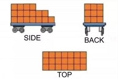 Nell’immagine si vede un camion che trasporta diversi cubi. Ma non è chiaro qti cubi esattamente.