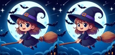 Allora, siete pronti per la prossima sfida? Osservate attentamente le due immagini di una giovane strega che vola su una scopa. A prima vista, le due immagini sembrano identiche. Ma in realtà ci sono due differenze e il vostro compito è quello di trovarle in 11 secondi. Provate questo rompicapo e mettete alla prova la vostra vista!