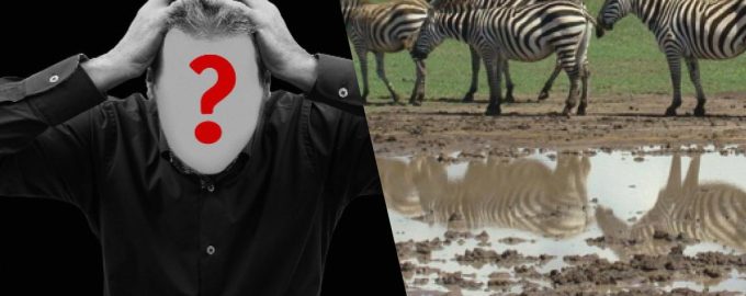 Esiste un compito di questo tipo: bisogna individe un cane in un campo in soli 6 secondi. Tutti vedono prima le zebre, ma non tutti riescono a vedere il cane in tempo. È necessario riorientare l’attenzione in modo che non si fissi su oggetti di grandi dimensioni. Cercate di indovinare dove potrebbe essere nascosto il cane.