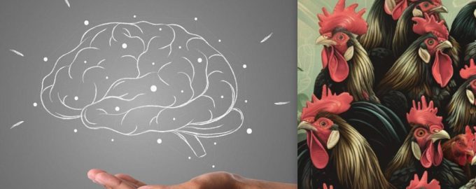 Esiste un compito di questo tipo: bisogna trovare una gallina tra un gran numero di galli. Nell’immagine c’è solo una gallina e ci vogliono 7 secondi per trovarla. Senza logica e immaginazione, questo test visivo non si può fare, perché bisogna sapere come una gallina si differenzia da un gallo e visizzare questo pollame.